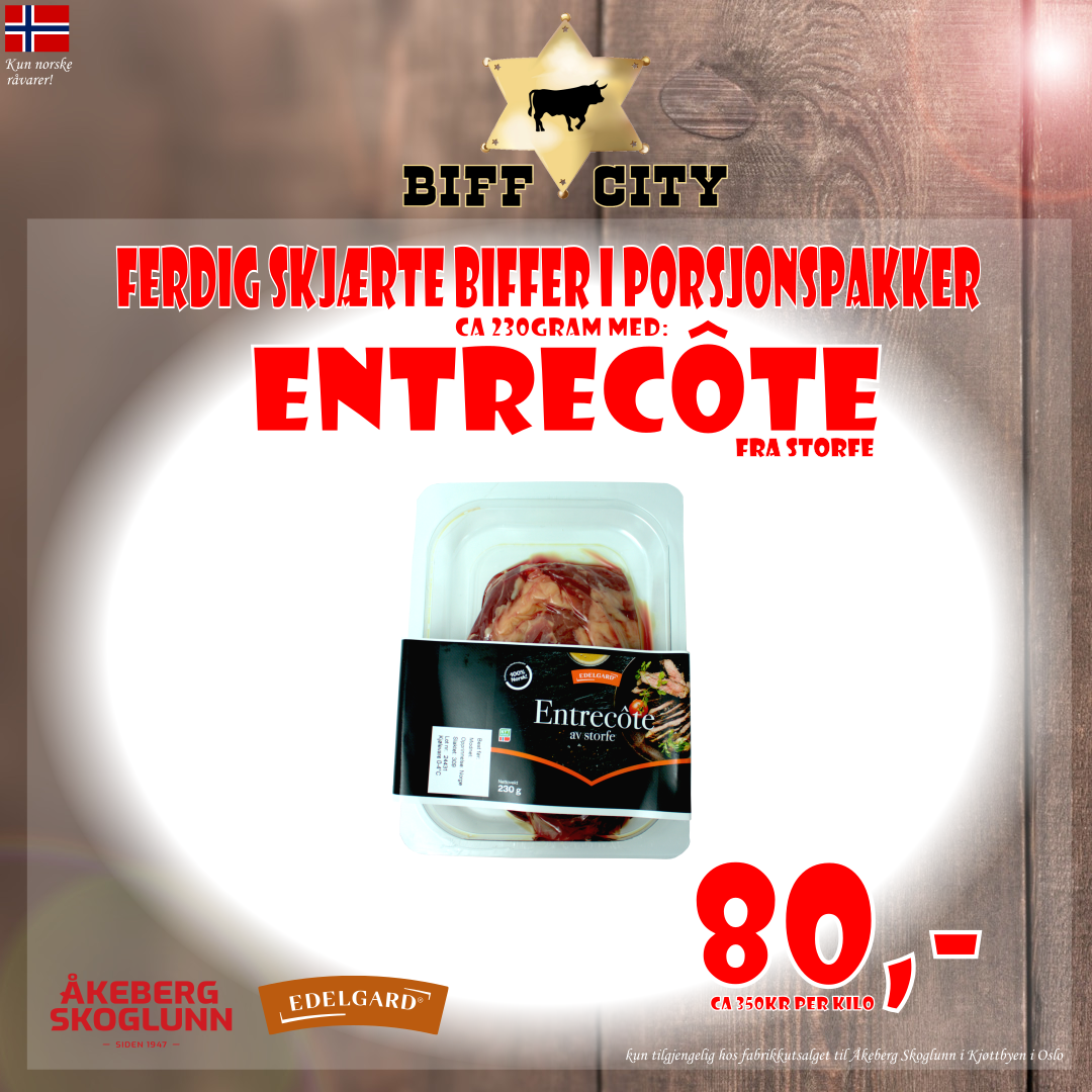 Vi har også fått inn et stort parti med porsjonspakninger av storfe ytrefilet og storfe entrecote. Saftige og smakfulle biffer som er en klar hit på enhver samling rundt middagsbordet.